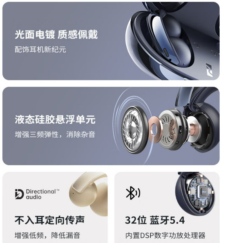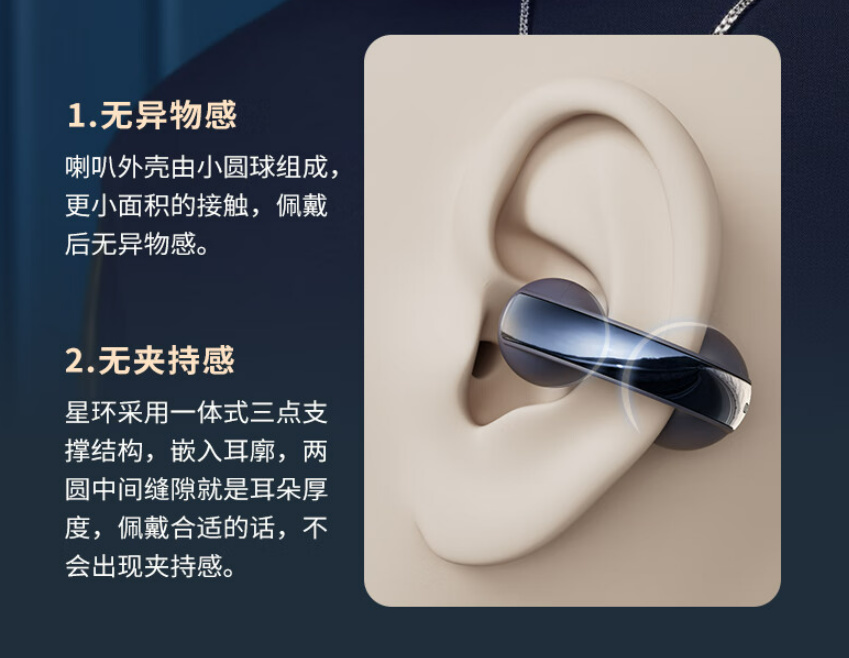 - 单个5g,不入耳设计,长时间佩戴不胀耳
