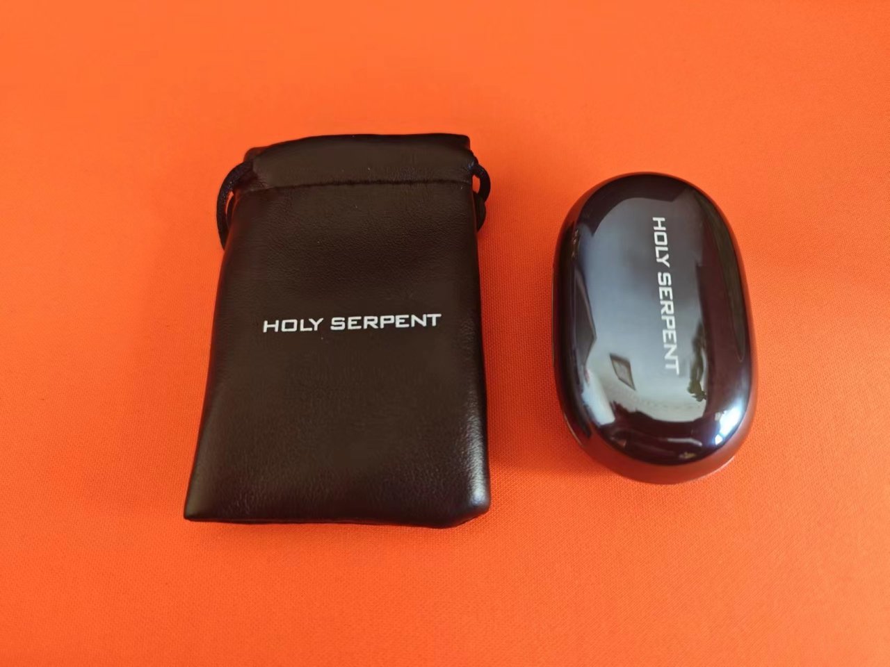 蛇圣星环耳机充电盒做的非常精致,看上去很贵气,很有高级感。盒子开盖式设计,同时还有磁吸收纳凹槽,细节慢慢。整个盒身较为圆润,揣兜里不会感觉硌着慌。同时还提供仿皮收纳袋,大大增加了耳机盒的使用寿命。