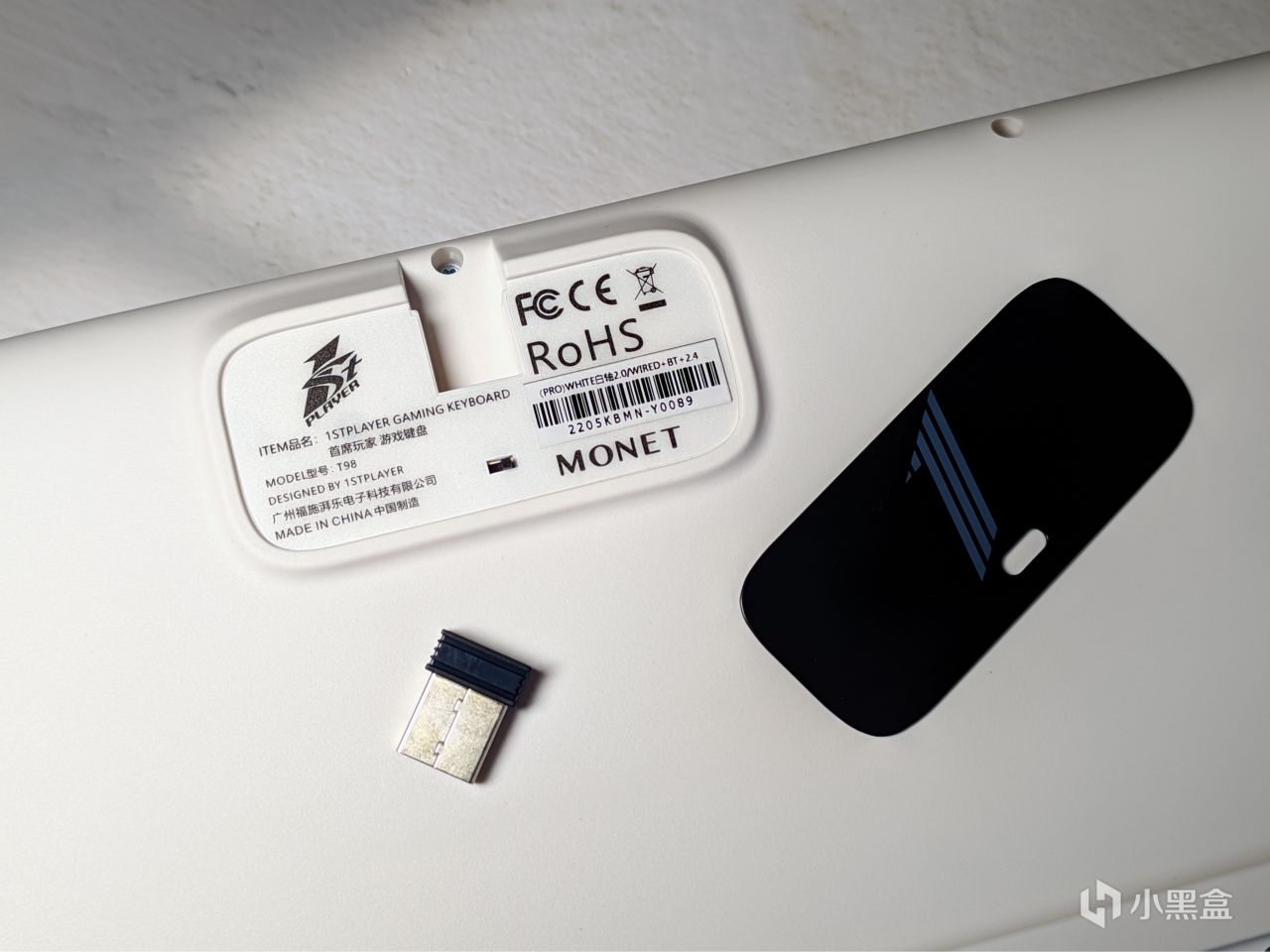 T98採用了三段式的腳撐,這點不算啥特點就不多說了,比較有趣的是,它做了雙磁設計,除了接收器可以磁吸到內部,這個金屬小銘牌的部分也做了磁吸,是的199的鍵盤你都能玩上小銘牌了,在其他這個價位的鍵盤上,我還真沒咋見過。