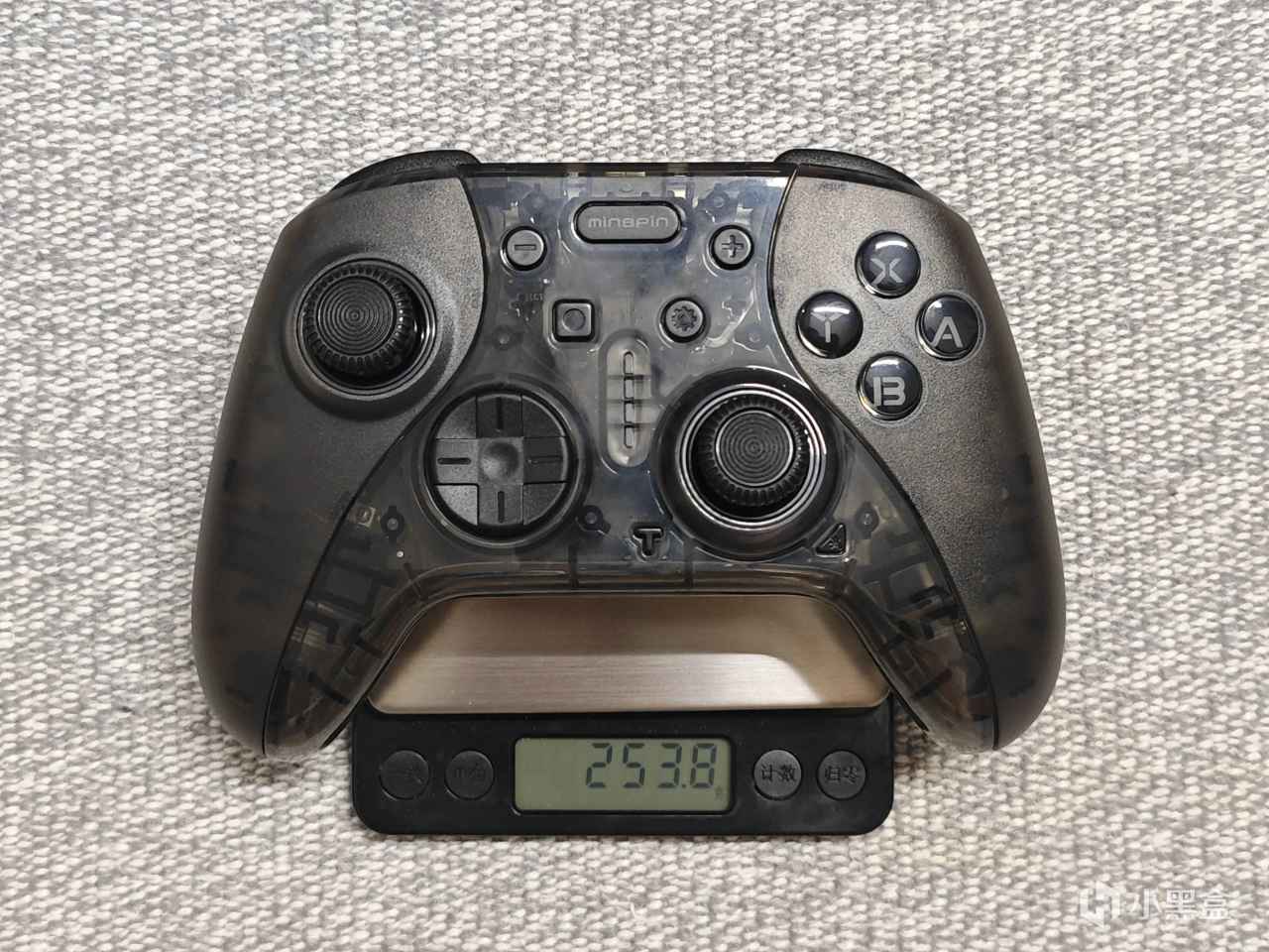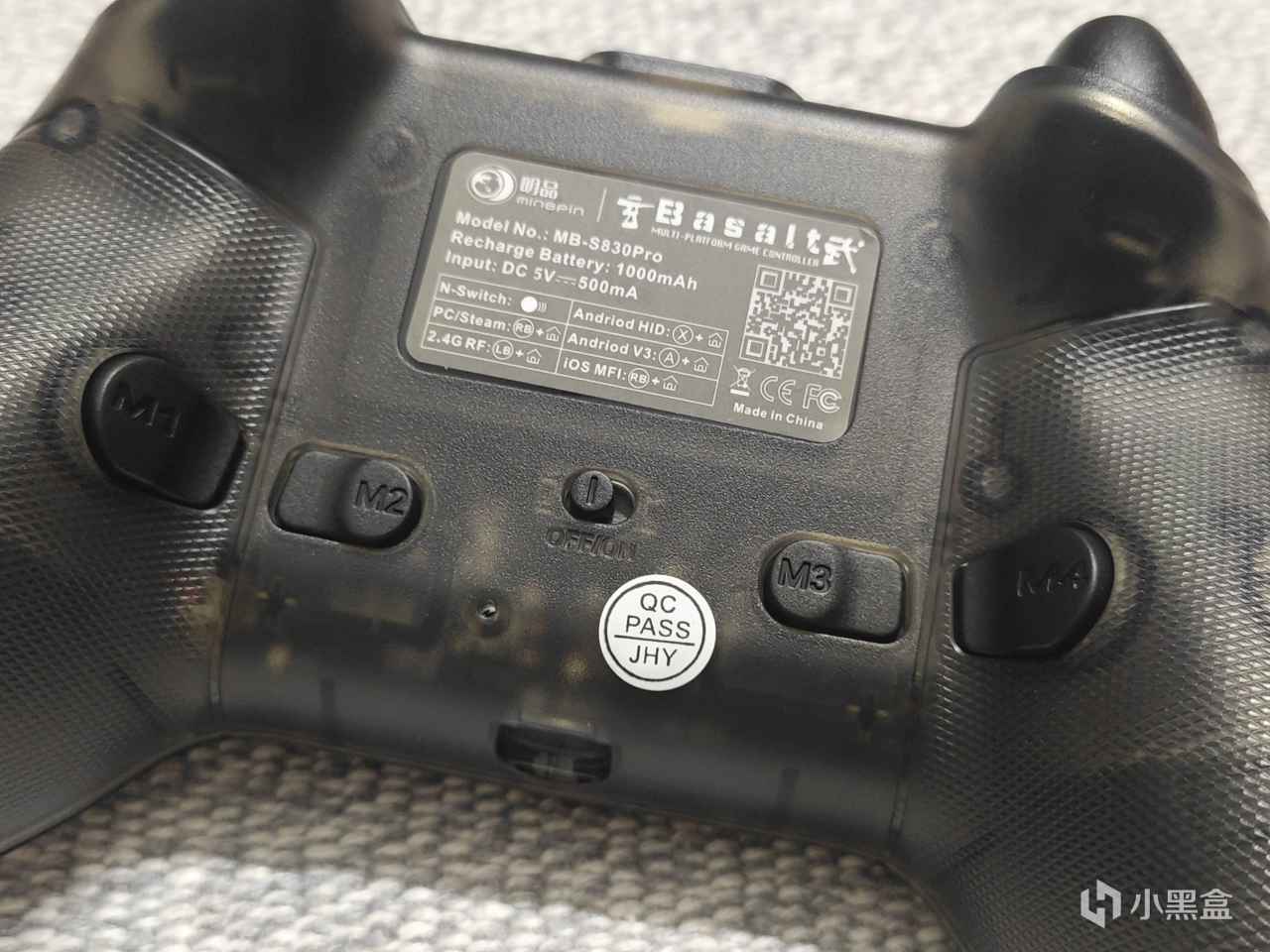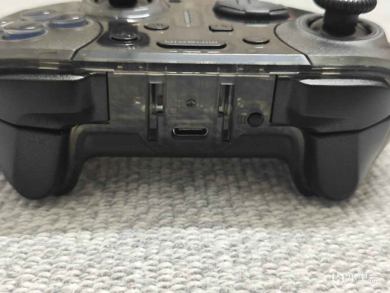 手柄背面把握有防滑紋處理,手感較爲細膩。背部設有4個可自定義的背鍵及背鍵開關,可以一鍵開關背鍵防誤觸。背鍵位置比較靠下,按鍵需要一點點力氣才能觸發,日常使用不用擔心誤觸的情況,