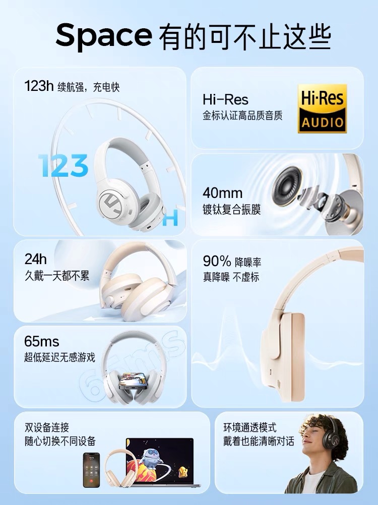 除了知名度高一點的漫步者、IKF以外,泥炭SoundPEATS家的泥炭SPACE耳機引起了我的注意——不爲別的,只爲券後170元的極致性價比,以及日用黨最直觀的一點:帥。尤其是我相中的黑金配色,可以說是縱享絲滑。