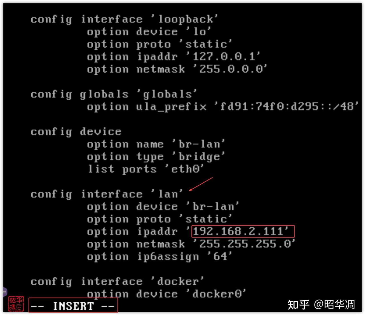 vi /etc/config/network