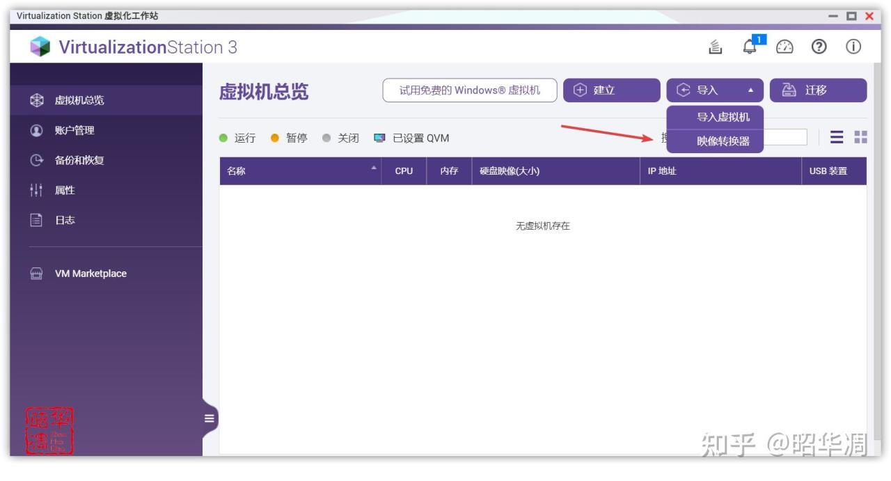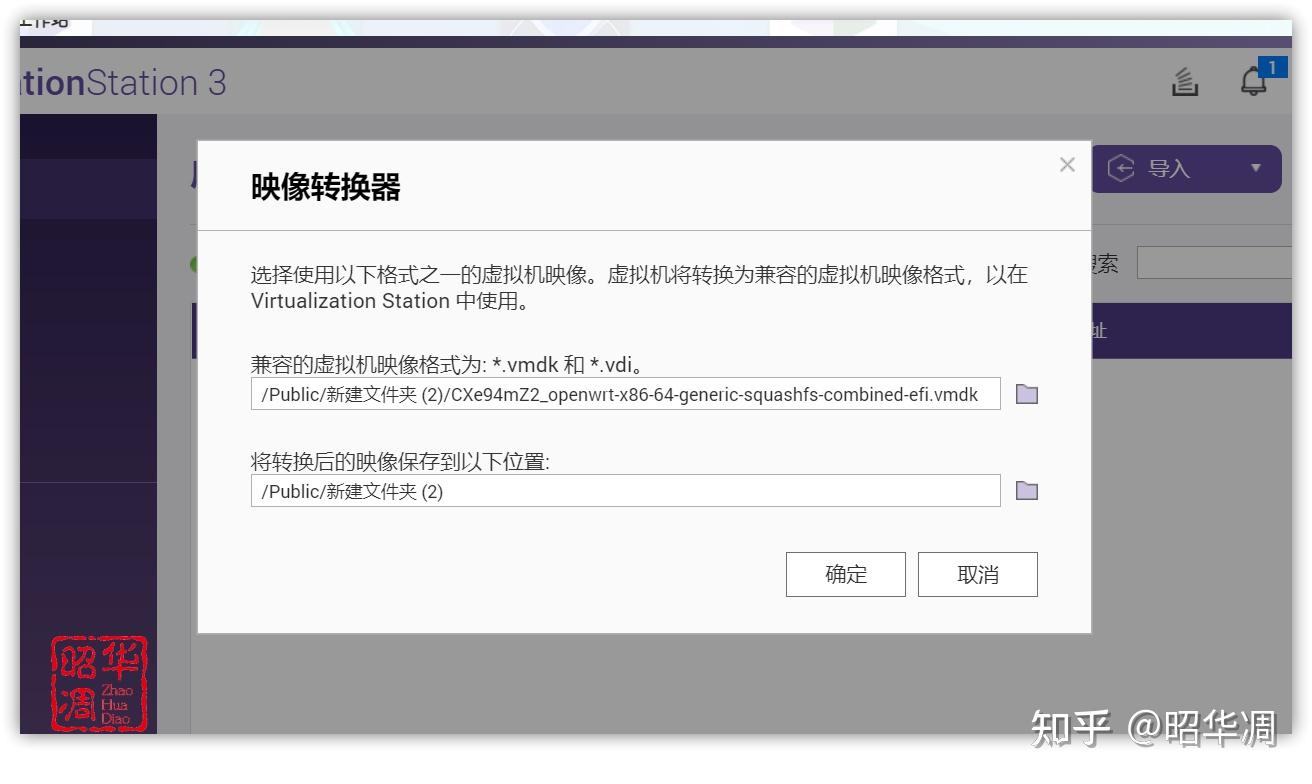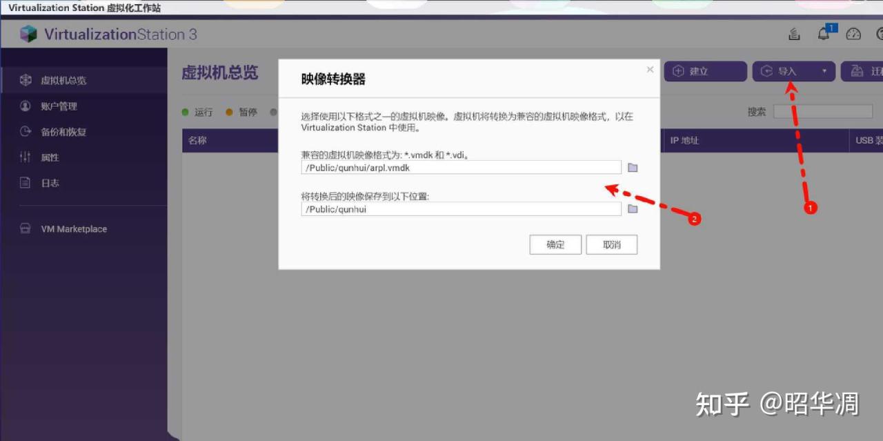 ▼啓動 Virtualization Station,右上角點擊【導入】-【映像轉換器】,上方選擇直接解壓出來的 img 映像文件,下方轉換後的保存位置。