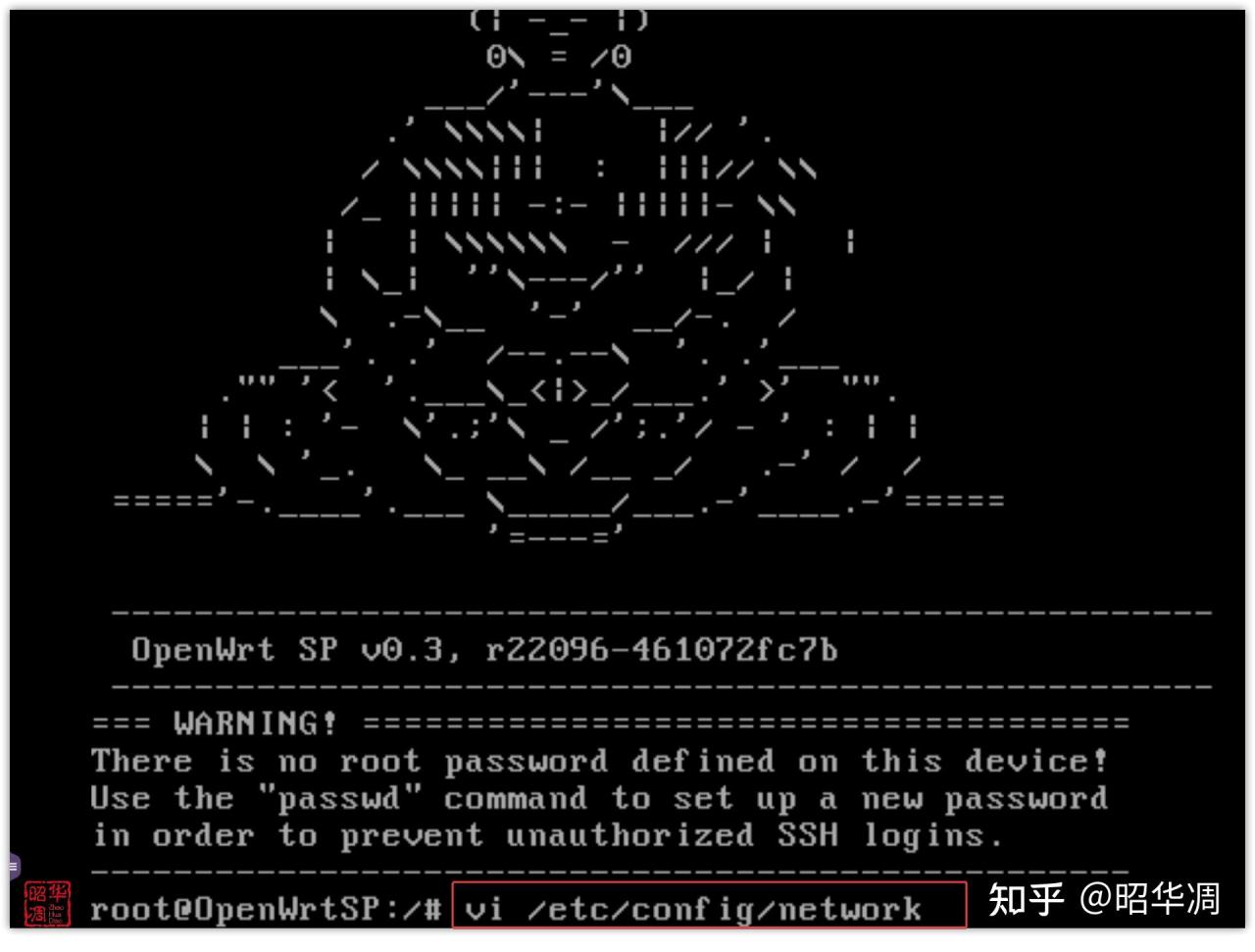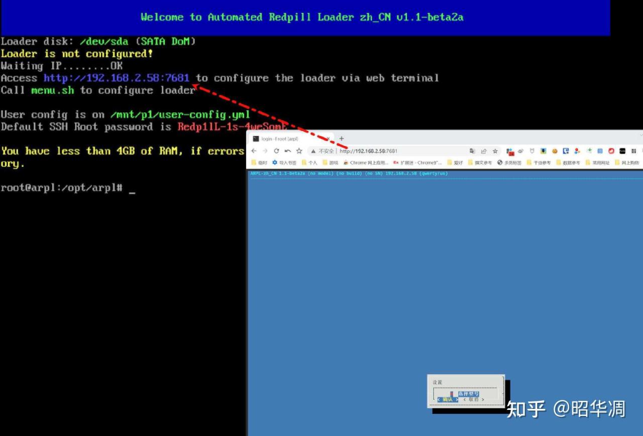 ▼沒問題的話屏幕會開始跑代碼,等幾秒在地址欄輸入之前修改的 IP 地址就能看到【openwrt】登陸界面。