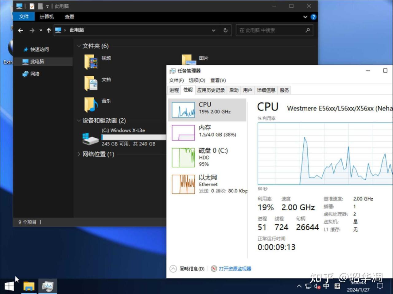 ▼系統佔用 4G,內存佔用 1.5G。很久沒玩精簡版 win10 了,也不知道這個版本屬於什麼等級的精簡版。