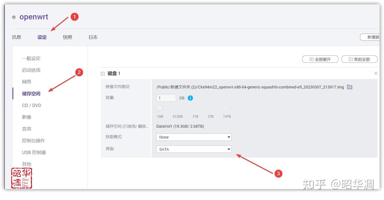 ▼【設定】-【磁盤空間】,將磁盤界面改成 SATA,點擊下方的【套用】