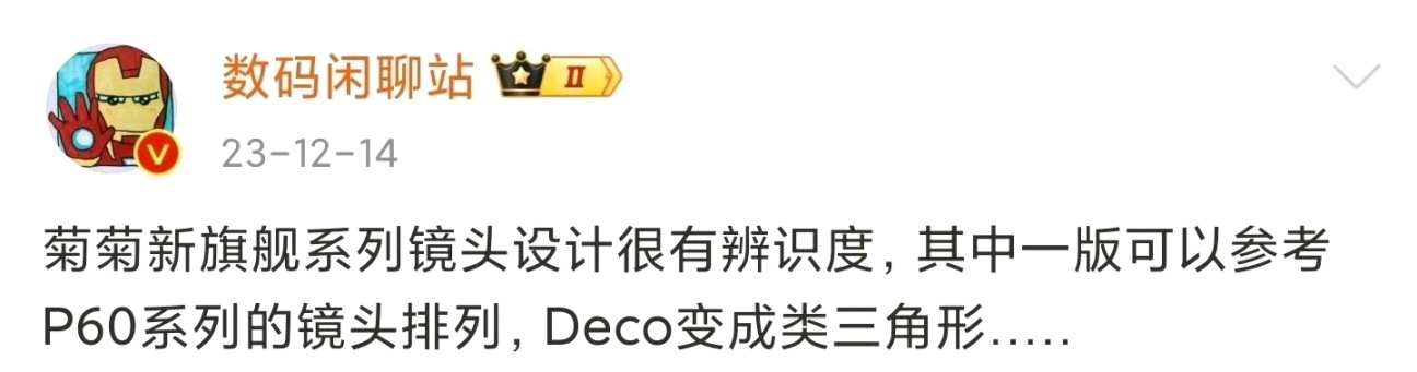——此外 据了解,华为P70或有部分型号为三角镜头模组。