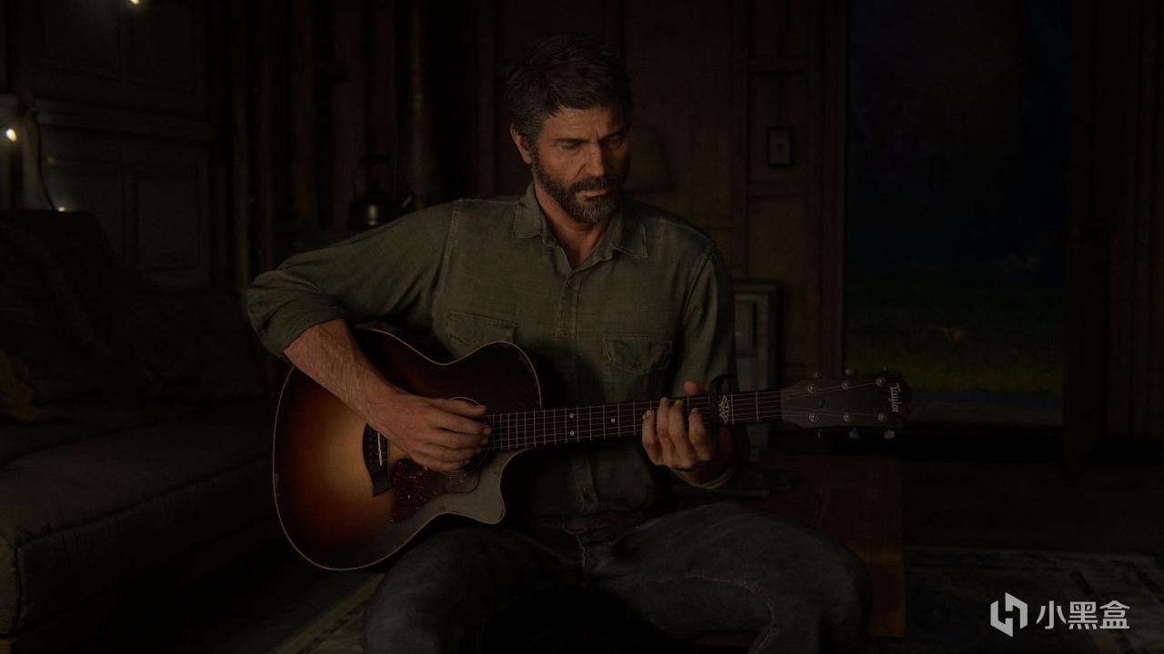 在玩法上的細節已然令人驚豔,在演出上的更是捕捉到每一絲角色該有的情緒,就像喬爾給艾莉彈完吉他,生怕艾莉不喜歡時的那種緊張中又帶有些期待的表情;喬爾死後,艾莉回到喬爾的屋子時,伸向門把手的手停在了半空,帶着輕微的顫抖,然後艾莉做了一個深呼吸,才鼓起勇氣打開了門;看到喬爾的水杯,艾莉掏出筆記本輕輕地畫下素描,似乎要將他的痕跡永遠地記錄在腦海裏...正是這些一點一滴的細節,堆砌出這個細膩卻殘忍的末世劇場。