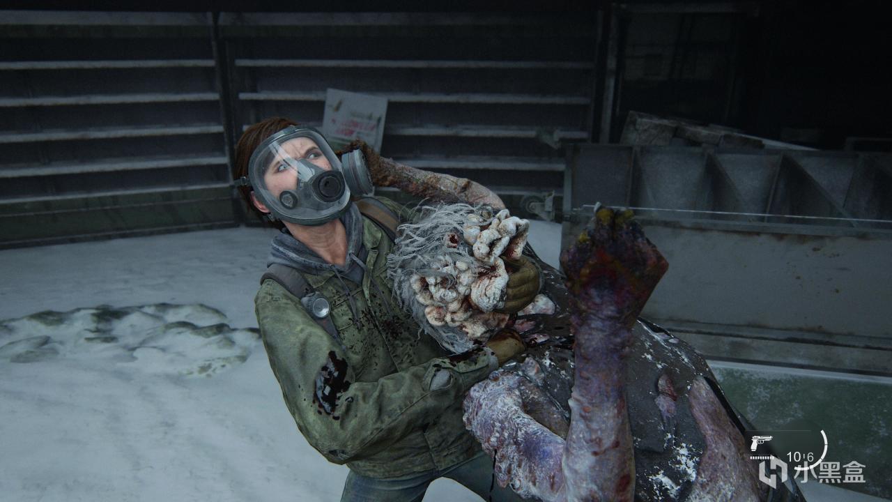 題外話:其實我覺得製作組已經很收斂了,如果換做是我來設計這個橋段,我會這麼設計:先來一段喬爾的視角,屏幕橫過來,表示其無力地掙扎,看着不遠處的艾莉想要靠近,然後再來段艾莉的視角,被控制着只能無能狂怒,然後不是可以操控艾比嗎?所以最後玩家操控的是艾比,按一下方框,掄一下高爾夫球棒,得足足掄夠七七四十九下,而且越到後面掄得越快,手柄的震動從第一下的強烈振動到後面偃旗息鼓,哎,這下對味了,美好的東西就是要毀滅給人看的。