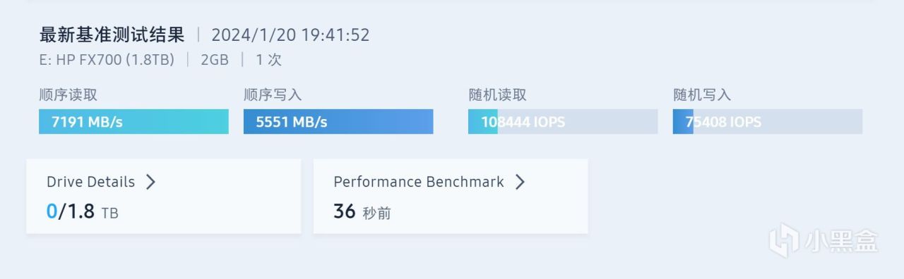 HP FX700 2TB固态盘采用了联芸主控+长存颗粒的经典方案,安装在PCIe 5.0(GEN5)M.2硬盘槽位来使用也能发挥出出色的性能表现,实测读写速度基本达到标称的7200MB/s、6200MB/s,非常推荐2024年有装新机需求的玩家入手。此外,HP FX700即便放在USB4硬盘盒里使用,读写速度也不拉跨,确保高速使用体验。再加上5年质保或者800TBW的保固写入量,HP大牌品质有保障,可以放心购买。