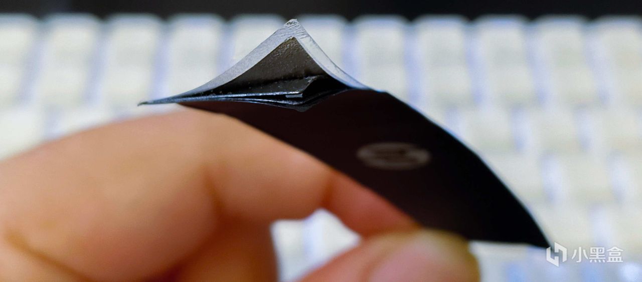 揭开标签从一角撕开可以看到这个散热贴片的内部构造,能够看到内层的石墨烯散热材质。