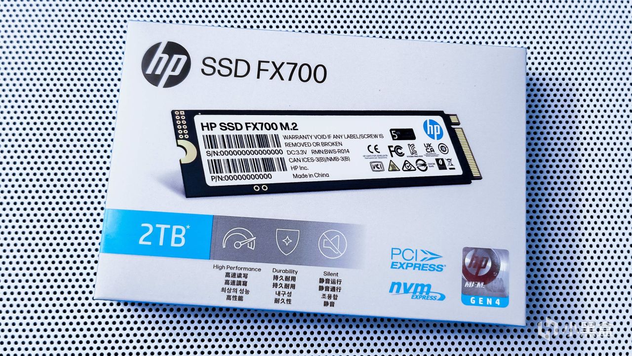 惠普固态盘在包装盒上印有型号,买的时候要检查一下是不是选择的型号。HP FX700对应的是PCIe 4.0固态盘,推荐笔记本电脑或者台式机电脑在主板上有PCIe 4.0 M.2硬盘槽位的电脑使用。如果是在PCIe 3.0 M.2硬盘槽位的电脑上使用,就会物理降速为PCIe 3.0固态盘。