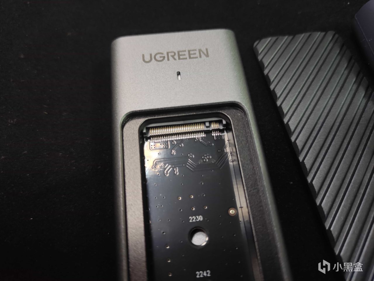 这款硬盘盒的安装非常的简单,首先你要确定一下你固态硬盘的大小,然后将那个橡胶塞塞到固定的孔位,将橡胶塞上面卡扣旋转到反方向,即可塞入固态硬盘。