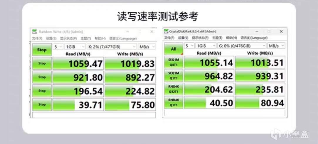 由于自己USB3.2GEN1接口的问题,所以在CrystalDiskMark的测试当中并未发挥出硬盘盒的全部速率。当然,结合我自身的使用场景,也给大家一个速率参考。测试结果图下图,官方给出的USB3.2GEN2的接口的数据也放在下方,有需要的用户可以自行对比。