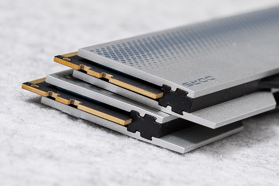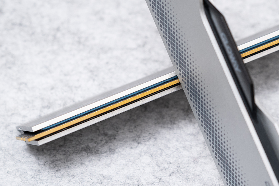 龙武 DDR5 6800Mhz 内存的采用加厚PCB版,先进的层叠设计,将电路布线层层叠加,延长内部电路距离,通过优化信号传输路径和弱化电磁干扰,10um加厚金手指镀层也有效的延长了内存使用寿命。