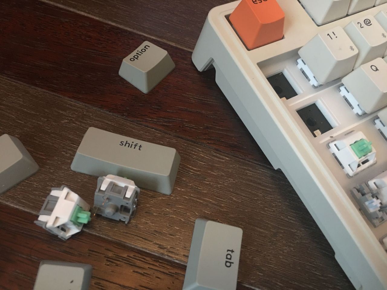 於是迫不及待地對鍵盤拆卸,有拔鍵器也是簡單方便,並且這款支持熱插拔,操作起來非常順手(還是PRO版本的專屬功能),之後我們可以看到,巴蛇PRO的軸體是特色的「白翼軸」。根據官方介紹頁面,這是一種手感接近茶軸、但是按壓輸入比茶軸更輕,對於日常打字場景更加方便。(愈發覺得很適合碼農使用,復古風+打字手感佳