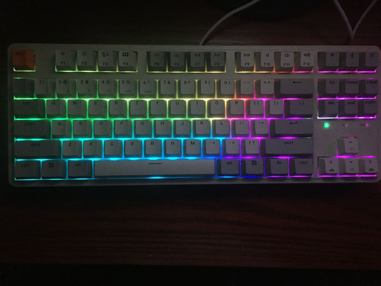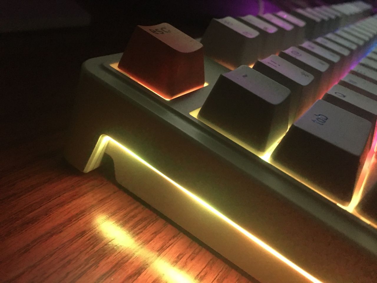 另外必須要說的是,這款巴蛇PRO的RGB背光也很炫酷,共有10種不同的燈效,只需要通過燈光鍵就可以自由快捷地調節燈光模式,尤其到了晚上直接變成家裏最靚的仔。鍵盤側面也有光源,人體工學設計整體高傾的弧度讓側光也有了很大發揮空間。