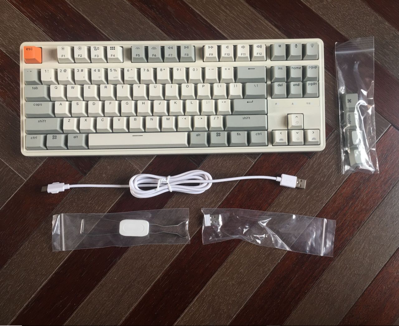 包裝盒內有一個2.4G接收器、一個拔鍵器、一跟數據線、四個鍵帽以及一個防塵罩,東西比較齊全,滿足了我的大部分需求。不得不說現在國內廠家的服務還是相當到位,以前可不會送這麼多東西,甚至防塵罩都得自己買。