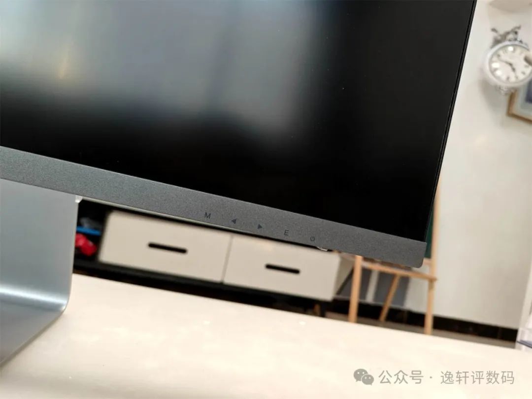 微星MD271UL将OSD控制按键放置在屏幕右下方,从左到右分别为菜单、左箭头键、右箭头键、效果以及开关键,其实无论是摇杆设计还是这种多按键设计都很方便,而且你调整好几乎不会再动它。
