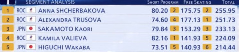但在賽前,瓦利耶娃被控訴使用了興奮劑,WADA介入進行調查,決賽當天,瓦利耶娃摔倒排在第四名,千金拿下金牌,莎莎銀牌,日本名將坂本花織爆冷摘得銅牌登上領獎臺。