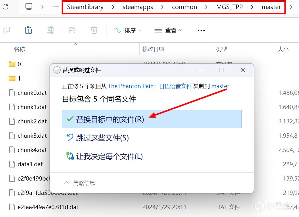 第五步:将上面所复制的文件粘贴至master文件夹并替换。