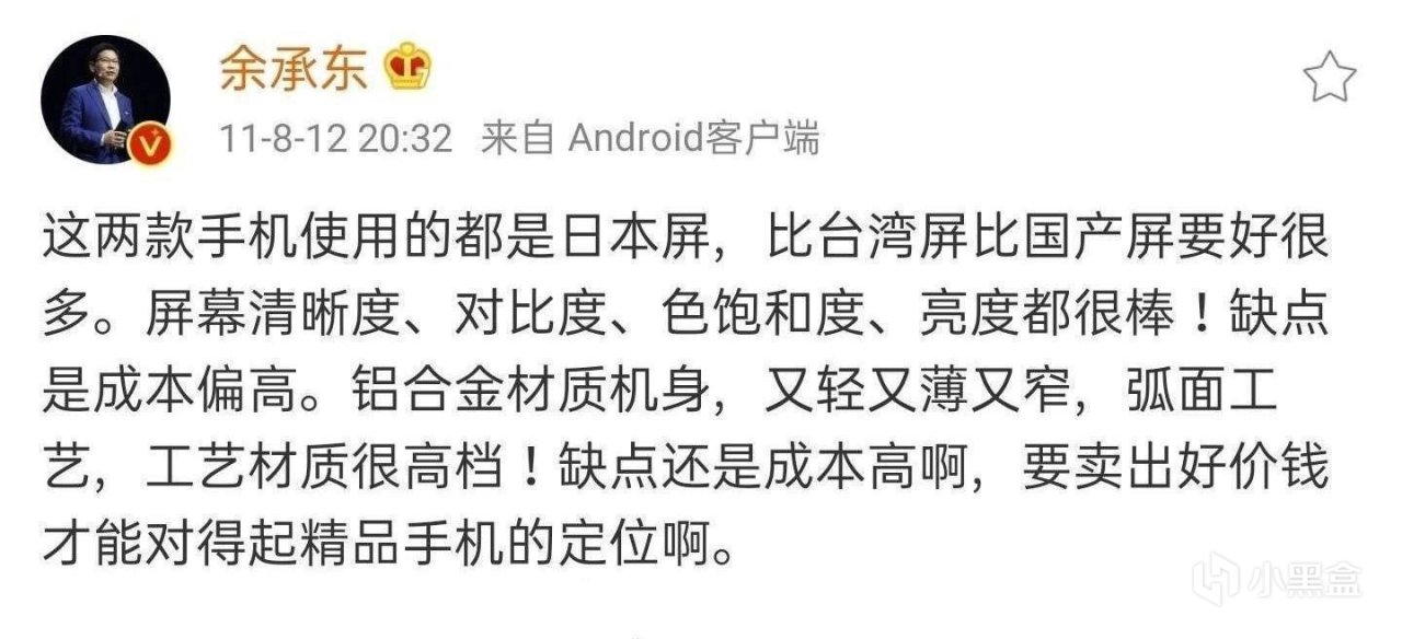 但是,从两人字里行间,我们都能感觉出当时两人都希望做最好的精品手机,因此更愿意选择效果更好的进口屏幕,只是在批评那些藏着掖着用国产屏幕去对标的信息不透明现象。