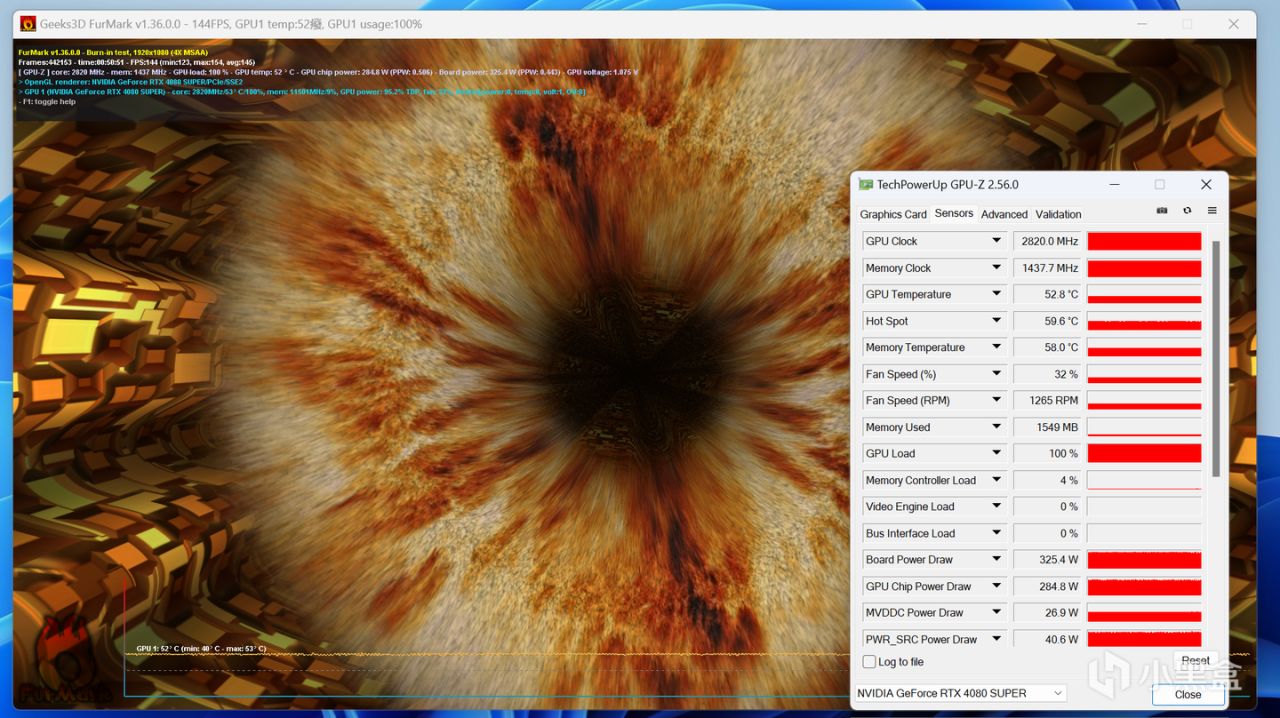 显卡最高52.8度左右,风扇转速1265PM左右,