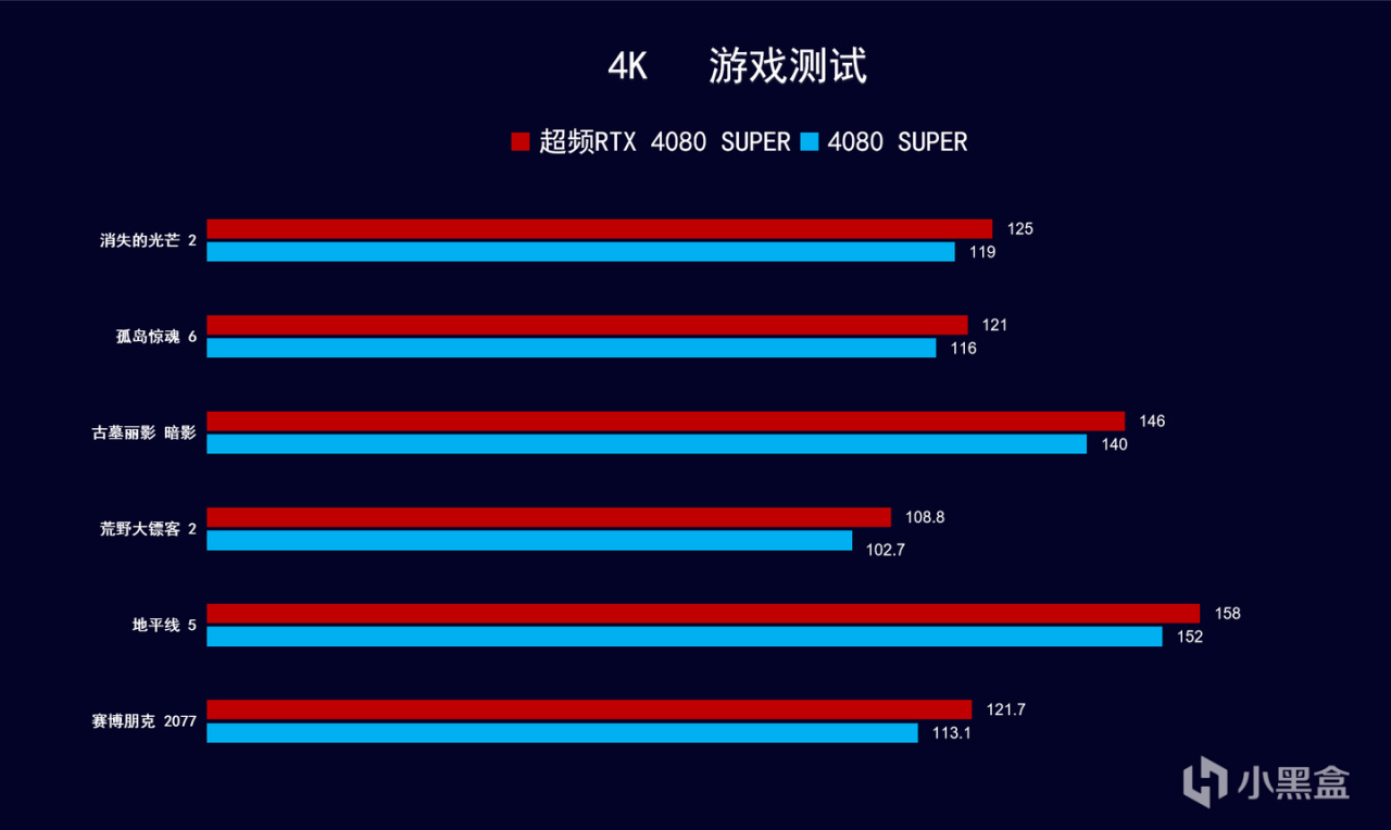 对比默频,超频后游戏帧数提升了5%对RTX 4070 Ti SUPER的领先有20%左右