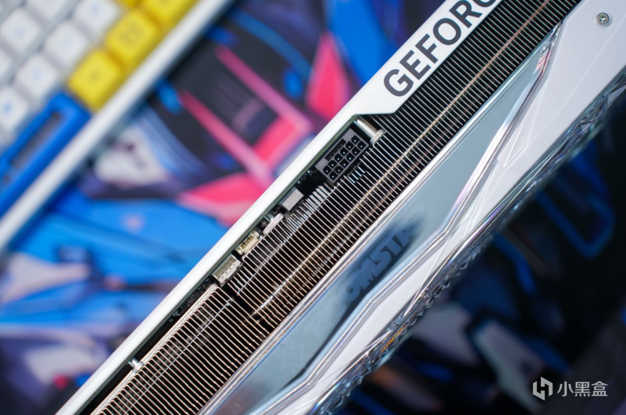 12VHPWR的接口与ARGB灯光同步接口都在顶端,与之前的RTX40 星曜系列没有太大出入。