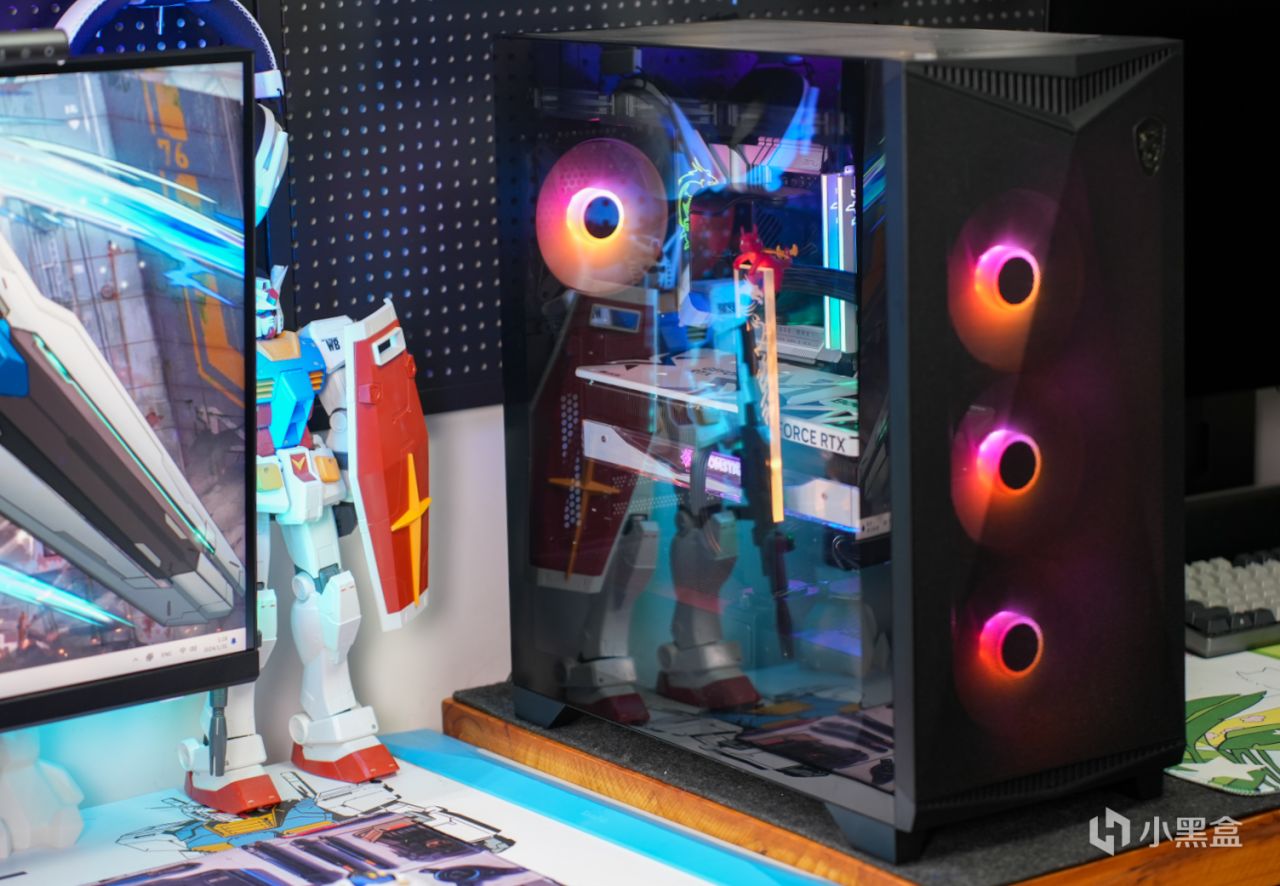 机箱方面选用的是微星氪金枪3,该机箱是微星在2023年打造的中塔机箱(从价格来看应该定位中高端系列),为此也拥有不少有趣的元素。