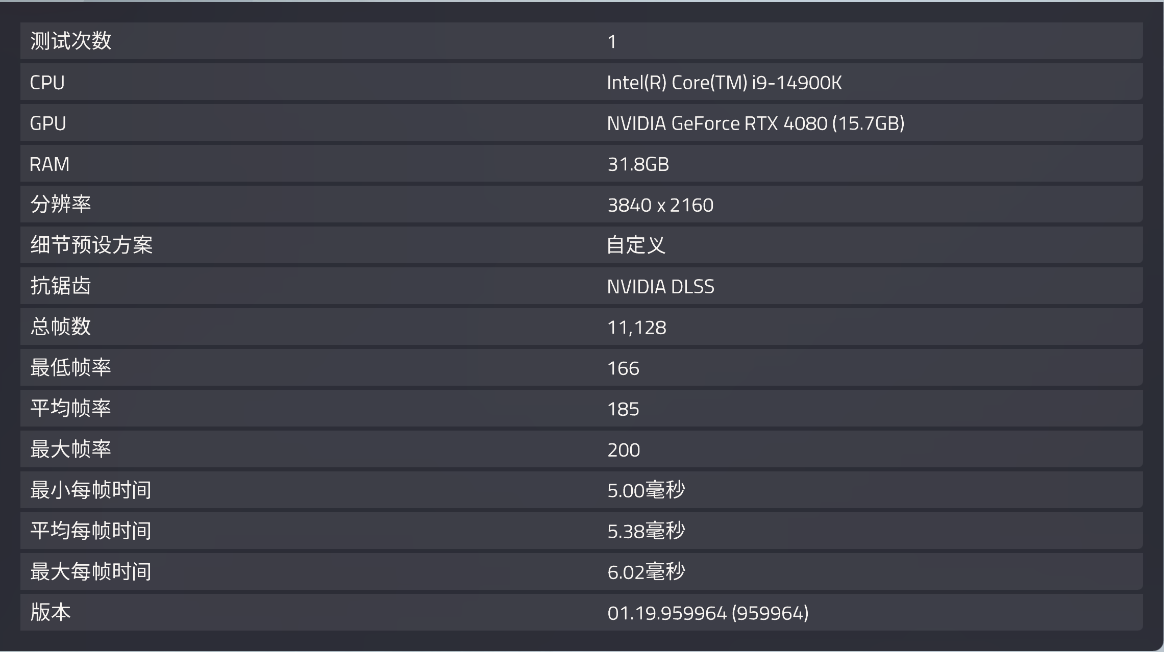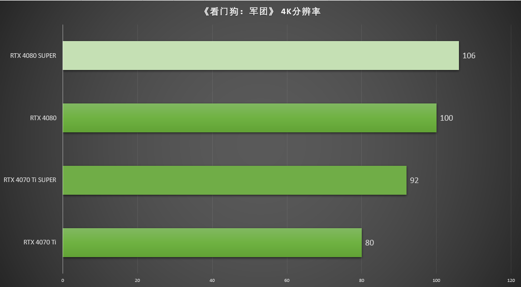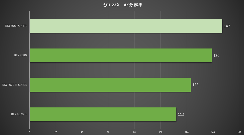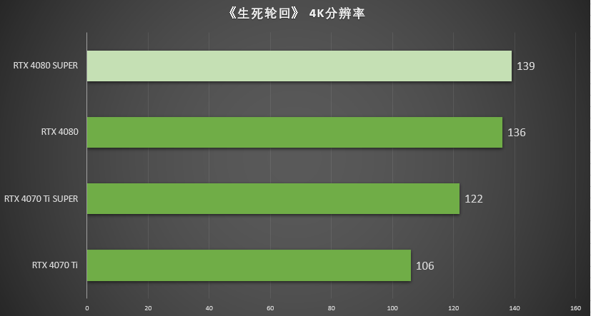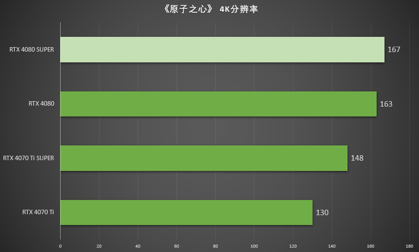 在测试中,RTX 4080 SUPER所获的167 FPS是RTX 4080平均帧率163 FPS的102.5%。