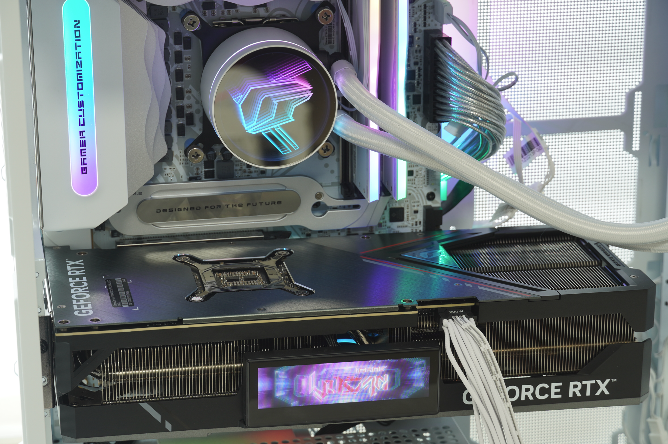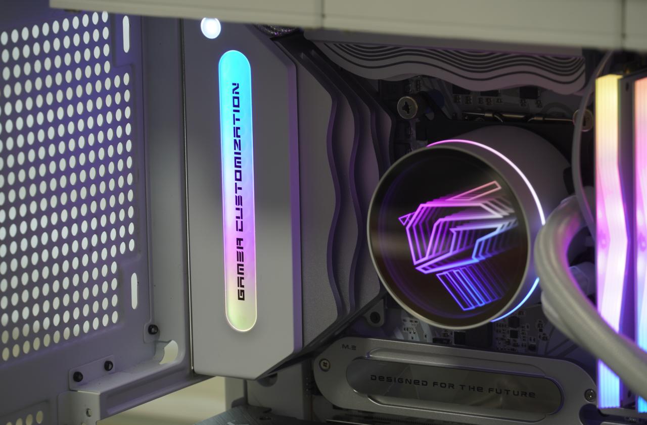 ▲其中,iGAME CUSTOMIZATION与FLOW均有ARGB背光,其上颜色像水流一样缓缓流动变换,十分符合FLOW这个词的含义。(FLOW灯条处基本会被显卡盖住,除非使用水冷显卡才能露出此处灯效)