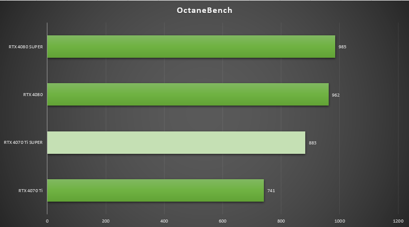 ▲在OctaneBench中,七彩虹iGame GeForce RTX 4080 SUPER Vulcan OC得分985,是RTX 4080 得分962的102.4%。