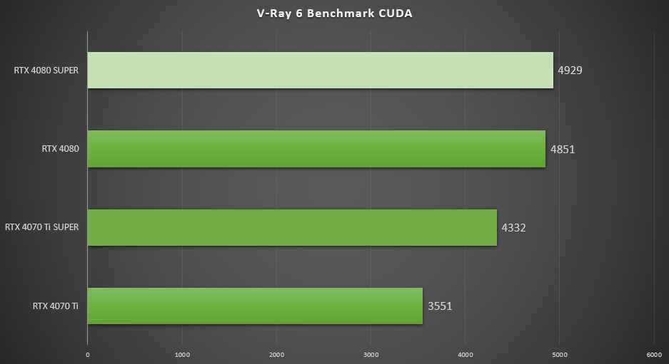 ▲在V-Ray 6 Benchmark CUDA中,七彩虹iGame GeForce RTX 4080 SUPER Vulcan OC得分4929,是RTX 4080 得分4851的101.6%。
