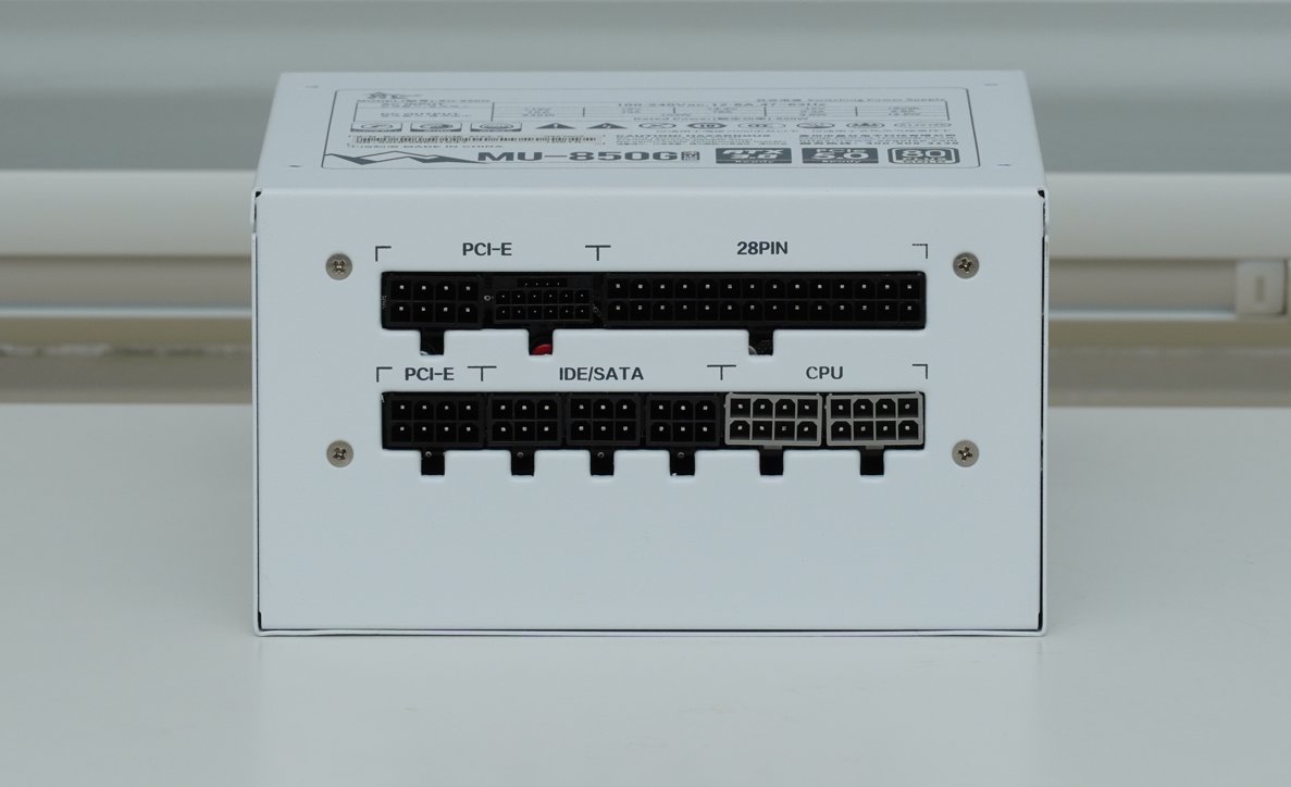 ▲作为一款ATX 3.0-标准的电源,鑫谷昆仑MU-850G共拥有1个CPIe 5.0的12VHPWR原生接口,1个28Pin 主板接口、2个8 Pin PCIe接口、2个8Pin CPU接口与3个IDE/SATA接口。