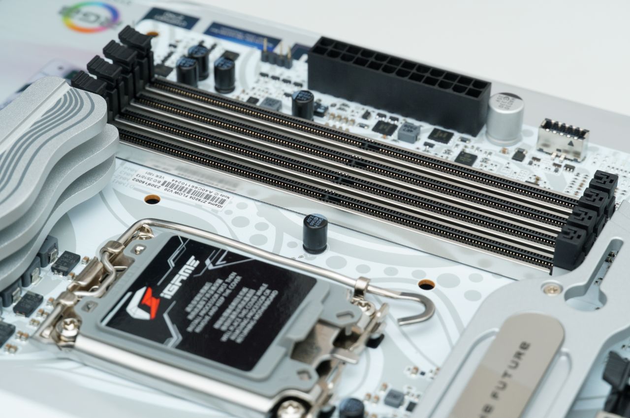 ▲iGame Z790D5 FLOW的4个内存插槽也都进行了金属加固,官方声称这块主板内存支持OC 7800+,表现已经相当不错了。