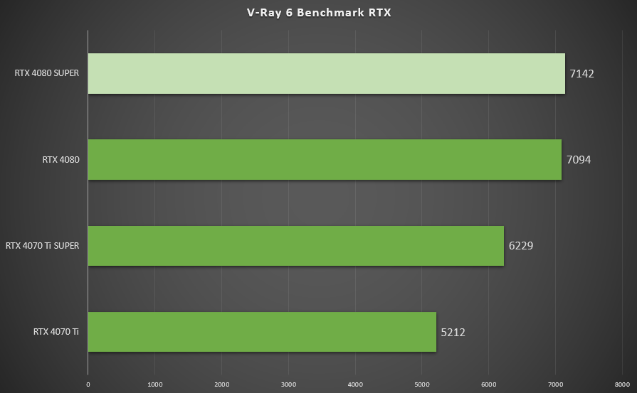 ▲在V-Ray 6 Benchmark RTX中,七彩虹iGame GeForce RTX 4080 SUPER Vulcan OC得分7142与是RTX 4080 得分4851几乎无差别。