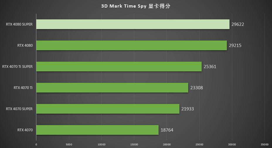 ▲在2K分辨率的3D MARK Time Spy中,七彩虹iGame GeForce RTX 4080 SUPER Vulcan OC 的显卡得分为29622分,RTX 4080 得分29215的101.4%。