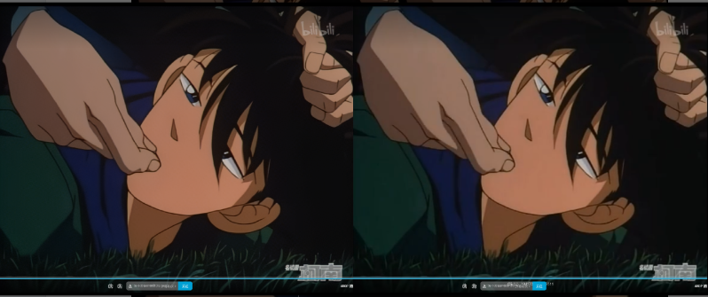 ▲RTX VSR支持流媒体播放,最新版本的CHROME浏览器以及最新版本的EDGE浏览器中均已支持RTX 视频超分辨率技术。我在B站上播放了《名侦探柯南》的第一季,分辨率均为480P,左侧为“RTX 视频增强”开启,右侧为“RTX 视频增强”关闭时,可见左侧画面的清晰度明显优于右侧画面。