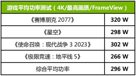 从我们用NVIDIA FrameView工具监测的情况来看,ROG STRIX RTX 4080 SUPER OC在4款游戏大作中的平均游戏功率为296W,考虑到强悍的性能输出,这样的能效比表现也是很出色的。