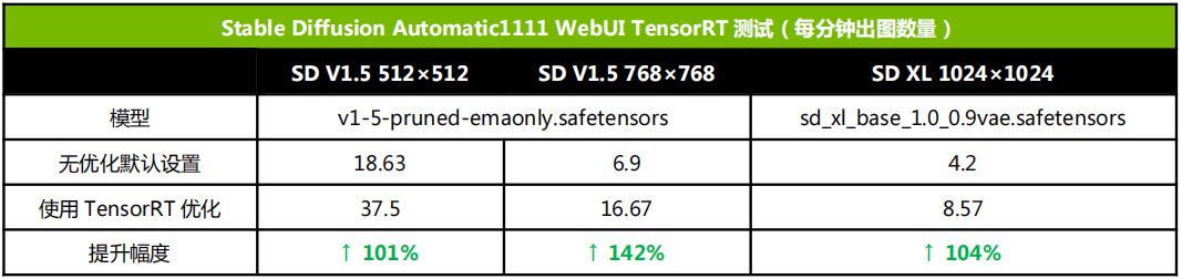 ▲在Stable Diffusion中使用NVIDIA TensorRT优化的Unet以大幅提升RTX 40 GPU的出图效率