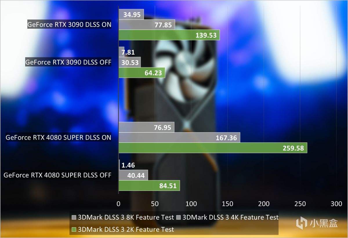 如果用RTX 3090作为比较就会发现,即便是拥有24GB显存加持,RTX 3090无论4K还是8K分辨率,在画面流畅度上都弱于GeForce RTX 4080 SUPER。
