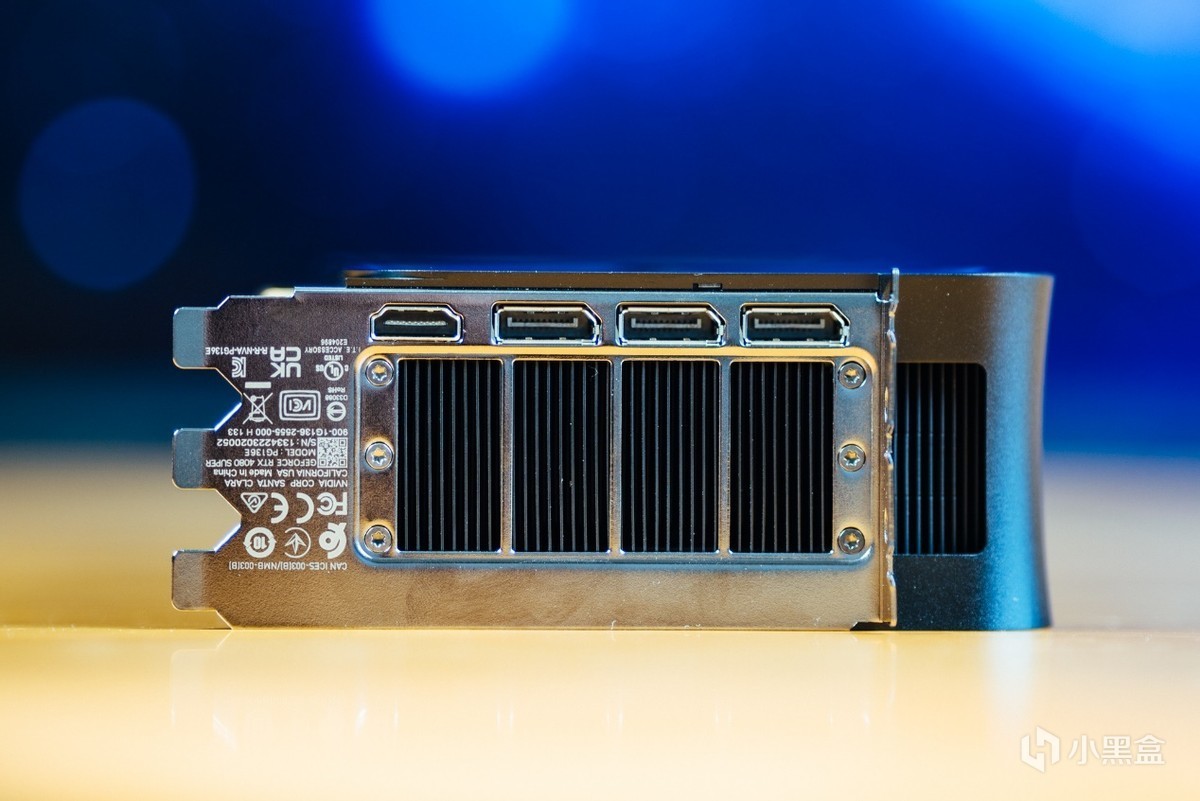 在材质选择上,GeForce RTX 4080 SUPER Founders Edition讲究一体成型,散热鳍片由99%铝合金打造,结合重量轻、刚性可靠、导热性好的特点。同时散热鳍片再度加厚,变成了三槽位设计,边框末端的支架孔被隐藏在磁吸的挡板下,仅凭指甲就能撬开,而复原的时候只需要将贴片放回,磁力便会自动吸附。