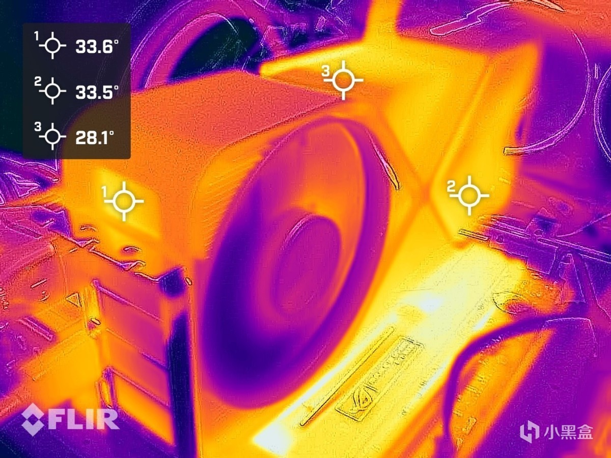 在压力测试中,GeForce RTX 4080 SUPER Founders Edition的GPU温度和表面温度都不高。比如GPU温度仅在58℃,红外线检测可以看到整个外壳都处在相当清凉的状态。