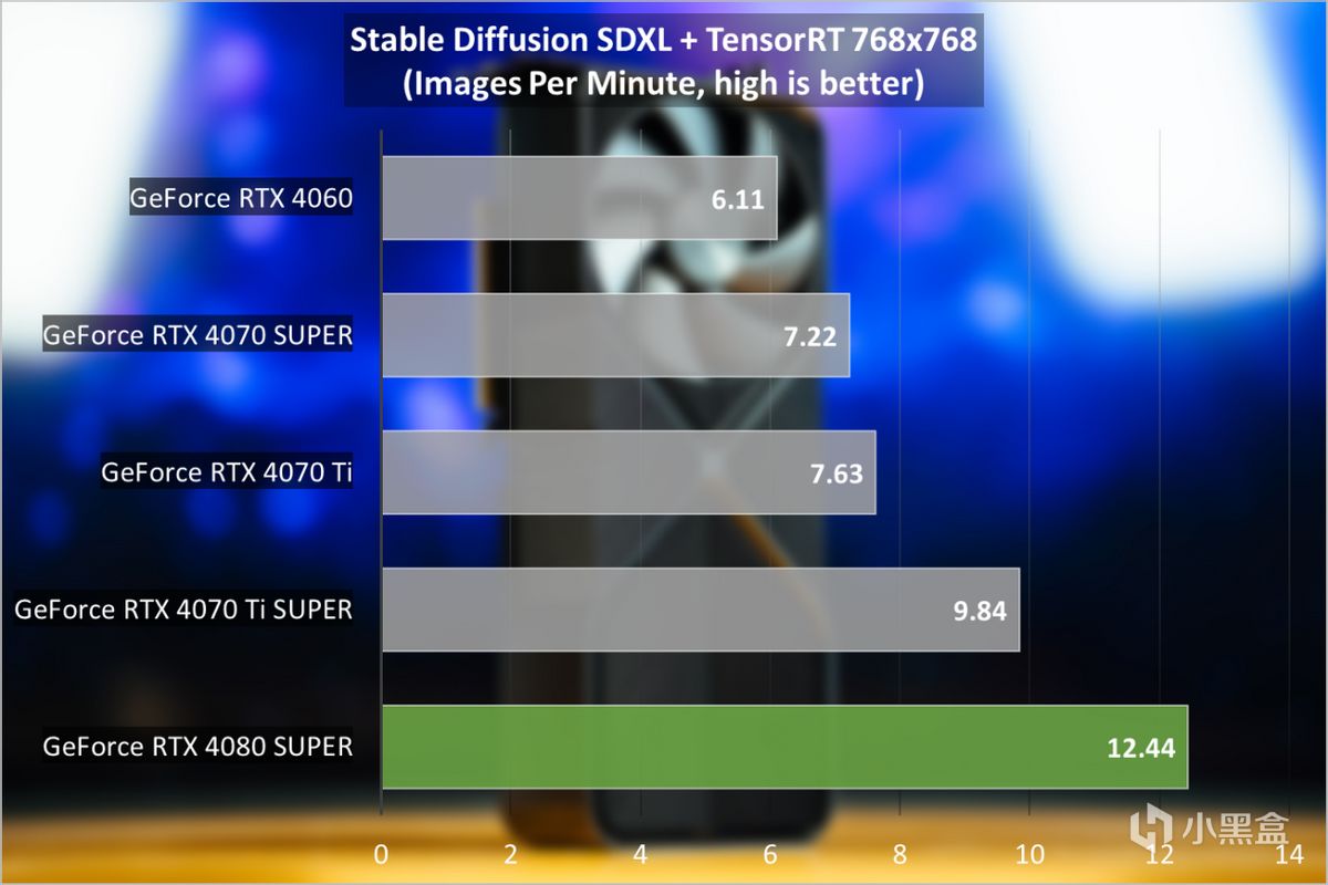 接下来是AI测试环节。GeForce RTX 4080 SUPER搭配16GB GDDR6X对生成式AI而言提供了巨大的进步。这里我们不妨以Stable Diffusion XL作为参考,Stable Diffusion XL本身运行需要依靠Transformer变换器和卷积神经网络实现,这两者均需要GPU进行大规模并行计算,这无疑是NVIDIA最擅长的事情。也正因为如此,近几年AI的飞速发展,很大程度上就是NVIDIA GPU技术发展所推进的。