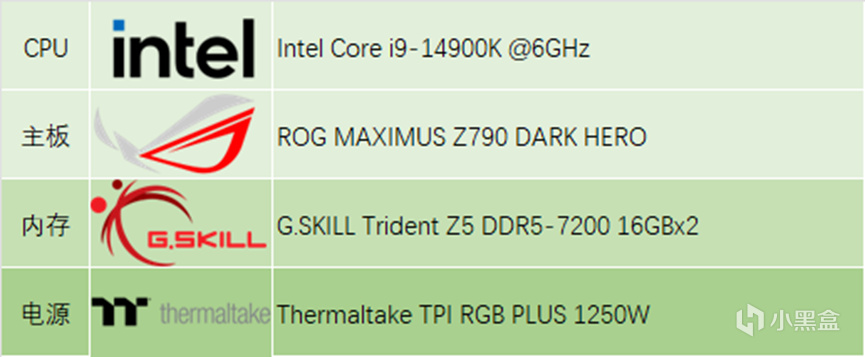 现在让我们进入测试环节,测试平台包括了Core i9-14900K、ROG MAXIMUS Z790 DARK HERO、G.SKILL Trident Z5 DDR5-7200 16GBx2,并配以1250W电源作为支持。