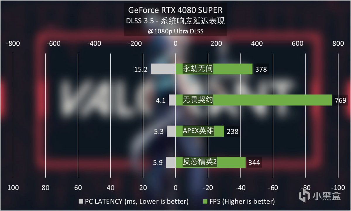 甚至DLSS 3与Reflex的融合,也让GeForce RTX 4080 SUPER在竞技类游戏中有更惊人的表现。特别是在1080p分辨率下,《无畏契约》《反恐精英2》等游戏都获得了300FPS以上帧率,并通过Reflex将系统延迟降低到了10ms以下。