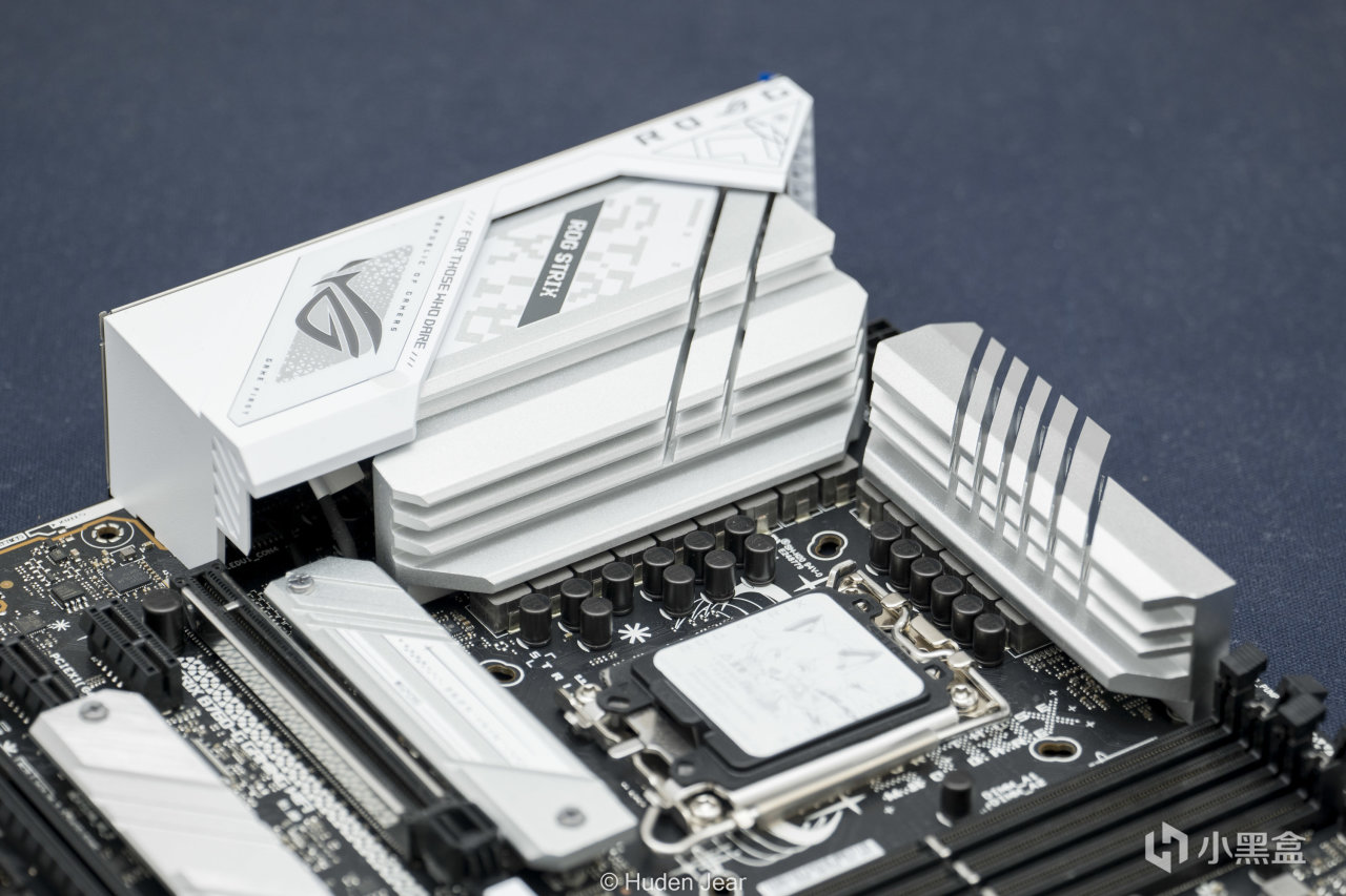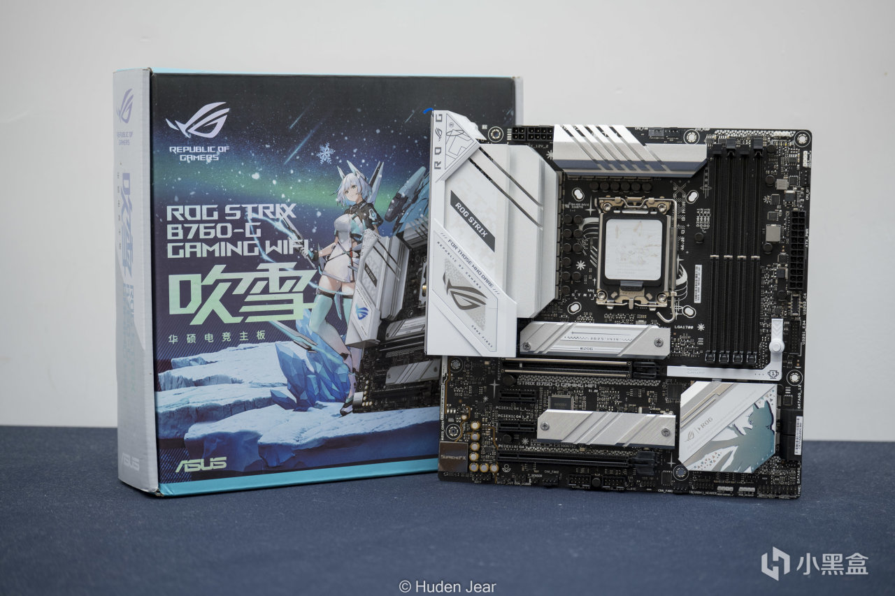 13490F和华硕STRIX B760-G ,也就是常说的小吹雪,这块主板基本能通吃13 14代的所有CPU默认状态了,而且内存支持不错。这块主板也是基本全白的马甲,而且吹雪这个版本还在一些细节上做了特化,更可爱了