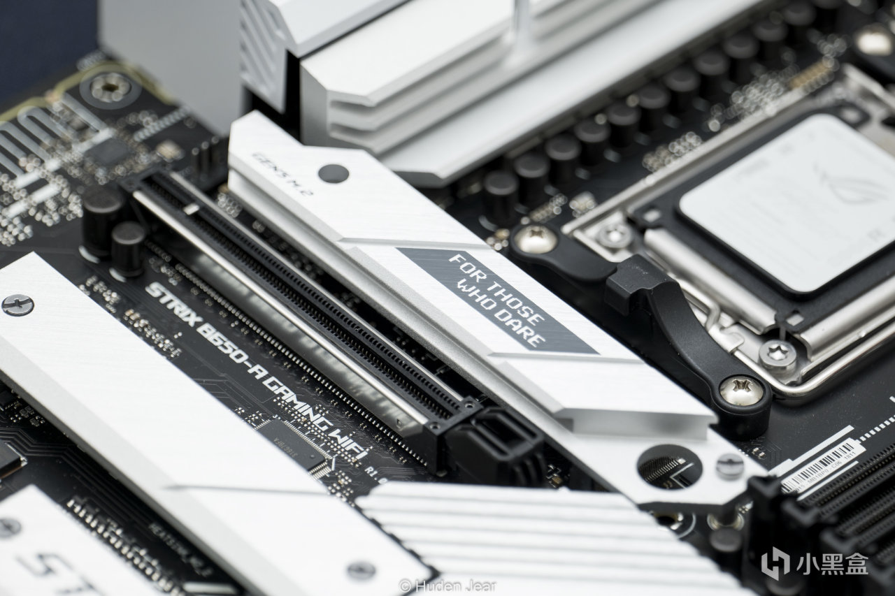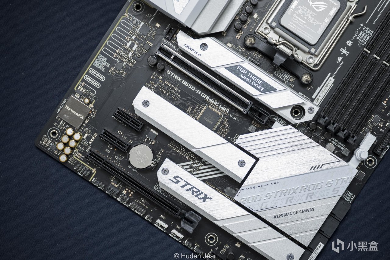 主板芯片组为B650,但是马甲还是很阔气,而且做工相当精致,和目前strix以及ROG主板一样,STRIX B650-A也使用了可以快速拆卸显卡的Qrelease,我觉得是主板上一个不错的设计进步