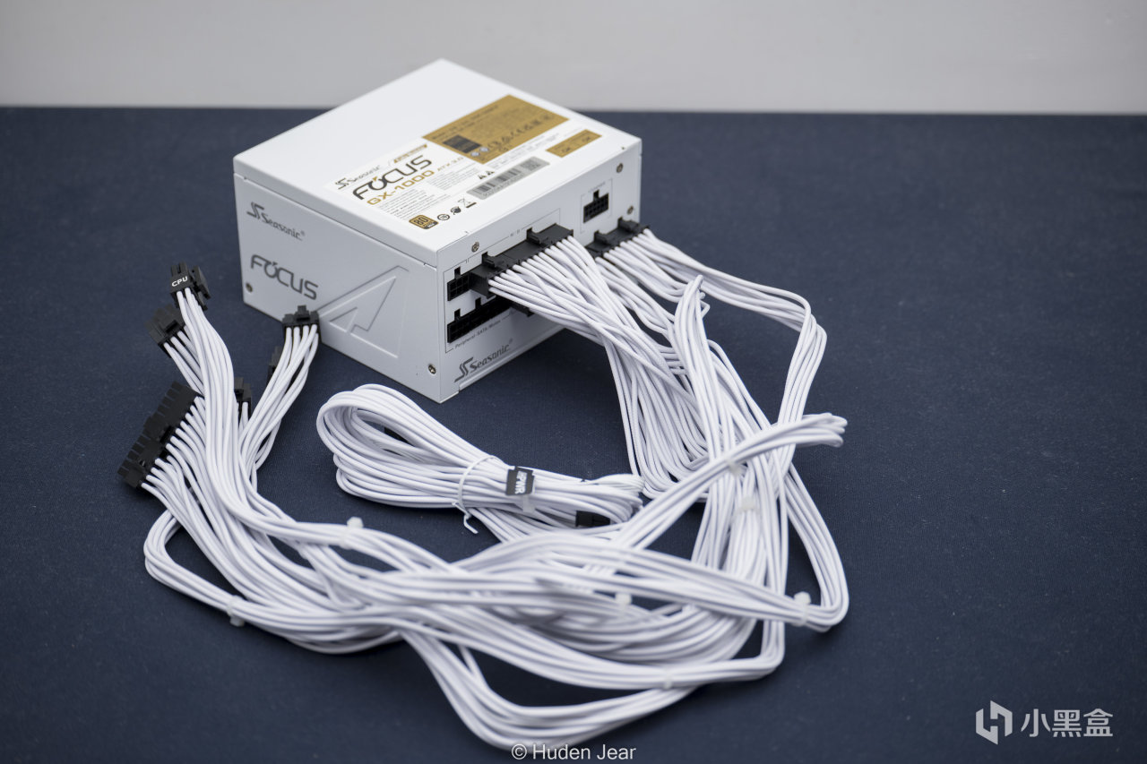 电源是海韵的GX-1000,最新的白色+12VHPWR的,而且还有纯白的压纹模组线,很适合搭配白色风格的主板和机箱来装机